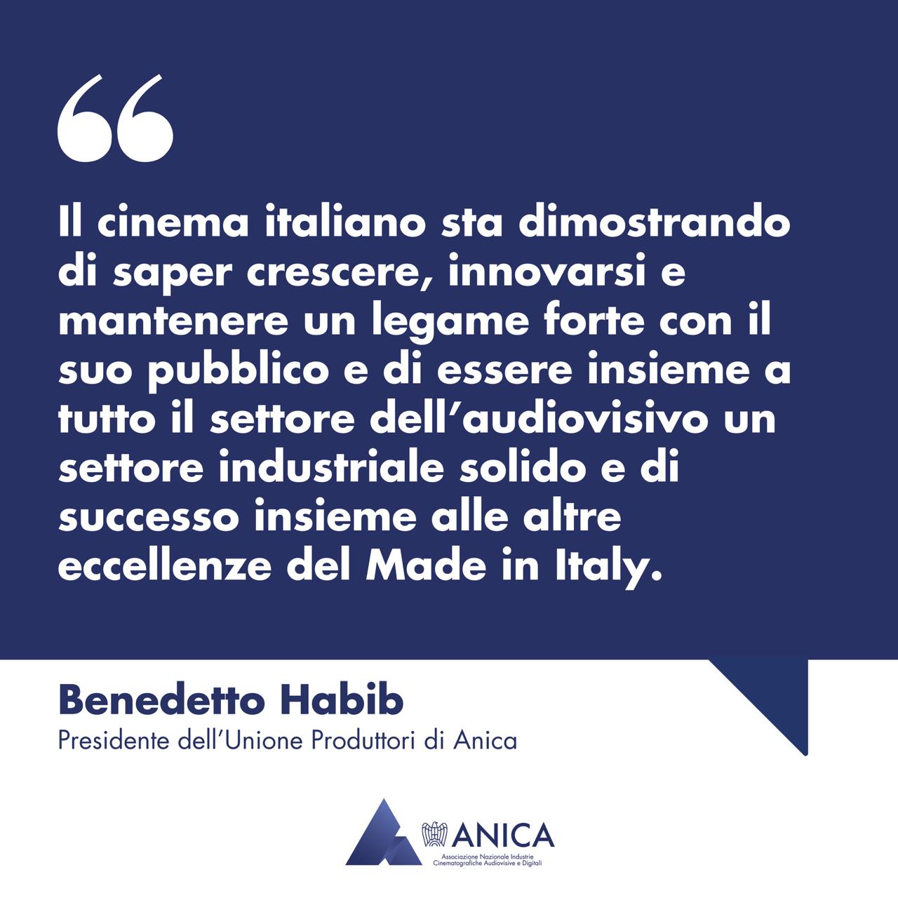 Il cinema italiano – conclude Habib - sta dimostrando di saper crescere, innovarsi e mantenere un legame forte con il suo pubblico e di essere insieme a tutto il settore dell’audiovisivo un settore industriale solido e di successo insieme alle altre eccellenze del Made in Italy”.