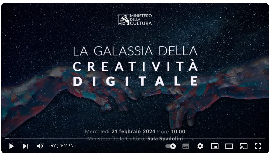Questa mattina si è tenuto a Roma, presso il Ministero della Cultura (Sala Spadolini), il convegno “La Galassia della creatività digitale” organizzato dal MiC.