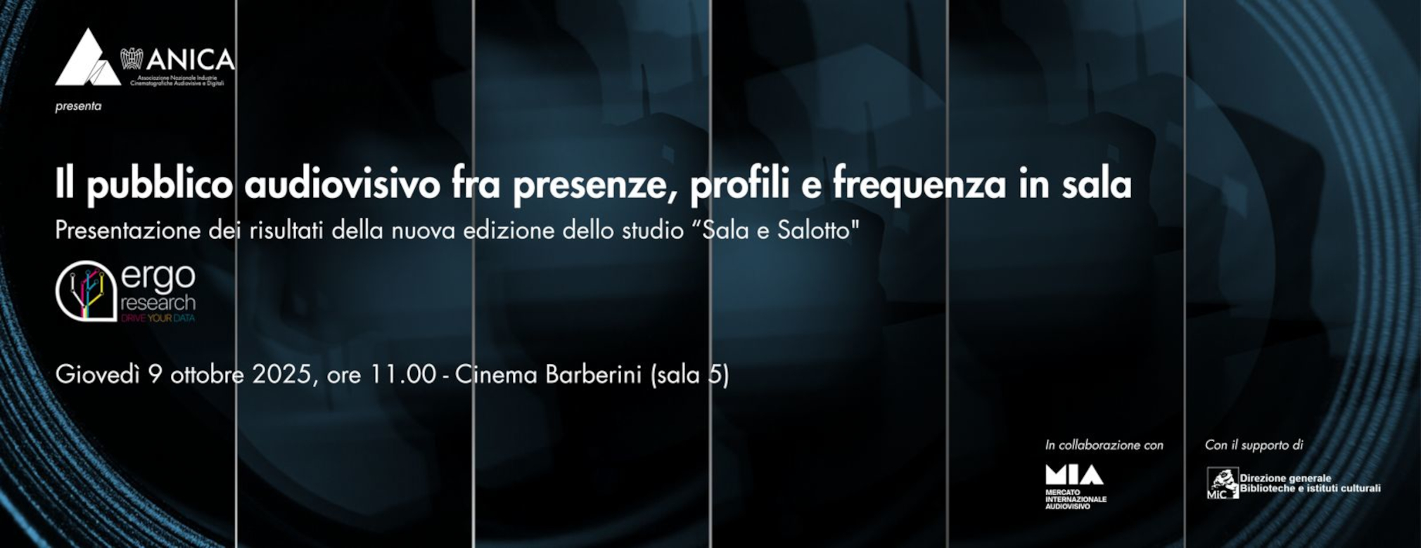 Roma, 9 ottobre 2025 – È stata presentato oggi al MIA, Mercato Internazionale dell’Audiovisivo, la nuova edizione dello studio “Sala e Salotto” di ANICA, curato da Michele Casula, partner ERGO Research. Lanciata per la prima volta nel 2010, e giunta alla sedicesima edizione come spin off della ricerca multiclient DigitalTRENDS, la ricerca offre un panorama puntuale del mercato dell’audiovisivo. Una ricerca che con la sua raccolta di informazioni complementari va ad integrare un quadro già molto ricco. L’Italia dispone infatti di una strumentazione all’avanguardia per la descrizione del mercato cinematografico con la raccolta e l’elaborazione in tempo reale dei dati su presenze e incassi (attraverso Cinetel) e la profilazione del pubblico dei principali film e su specifici orizzonti temporali (attraverso CinExpert, che arricchisce i servizi Cinetel). Quello che emerge è un’Italia in cui aumentano gli spettatori, seppur a fronte di una diminuzione del numero medio di ingressi, l’età del pubblico si abbassa e i modelli di fruizione cambiano.