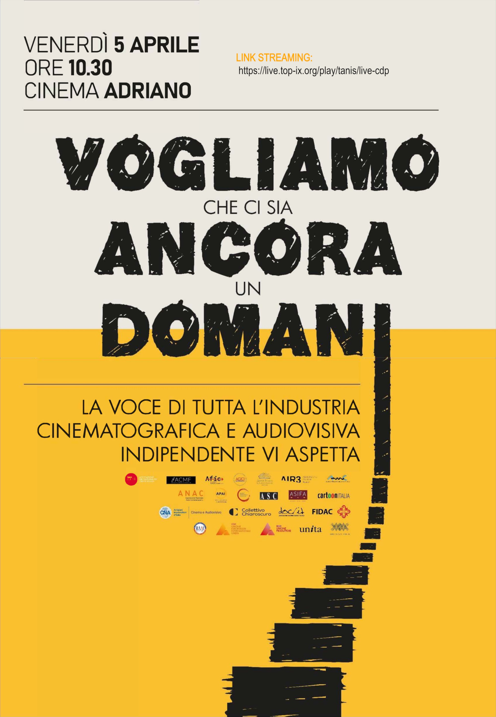 Siamo i rappresentanti di tutti i comparti che compongono questa industria, stiamo parlando con una voce sola, e chiediamo di rafforzare il dialogo con il Governo, che ci ha saputo ascoltare ed è intervenuto a difesa degli investimenti nel cinema indipendente italiano nella recente revisione del TUSMA (Testo Unico sui Media). In occasione della conferenza stampa, alla quale interverranno produttori/trici, attori/trici, registi/e, sceneggiatori/trici, tecnici e maestranze, presenteremo molte e diversificate proposte per una rapida e condivisa ripresa di tutto il comparto.